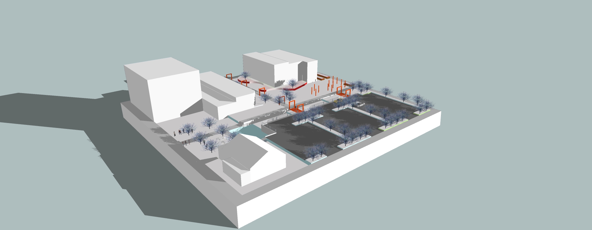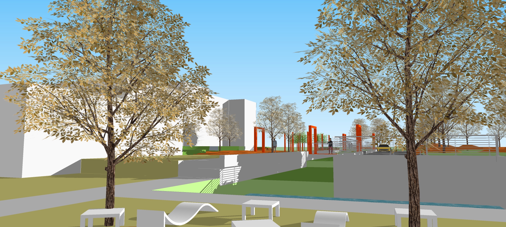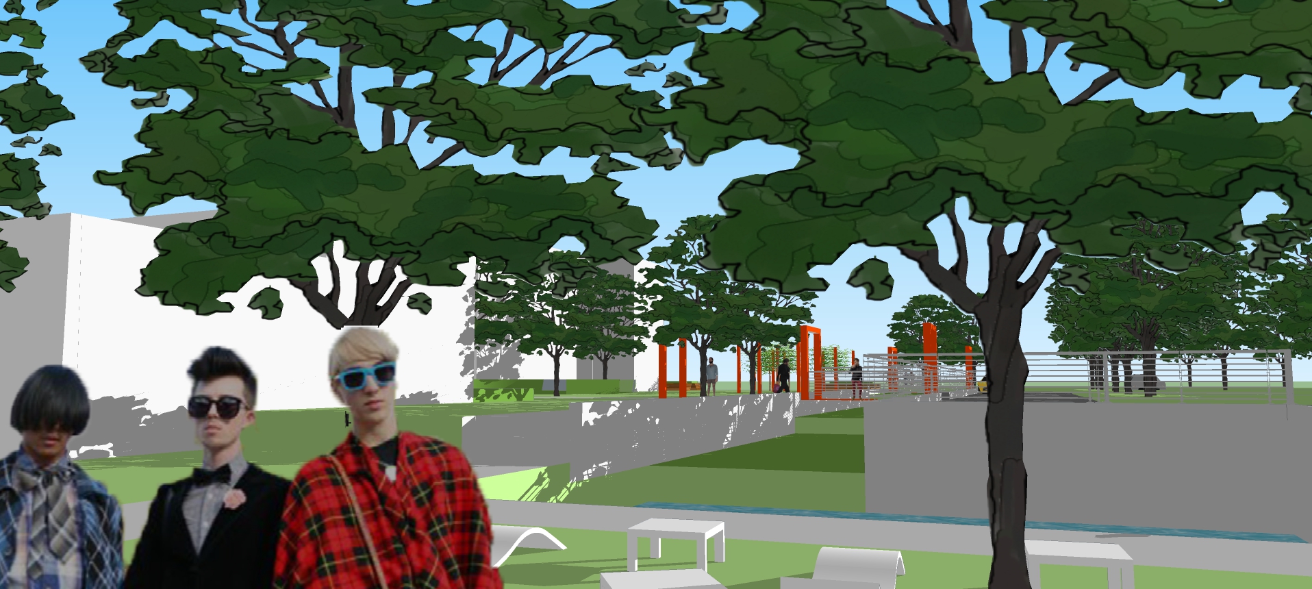I rendered my site design in SketchUp to demonstrate how the life cycle of deciduous trees will shape the site character. Trees not only provide numerous ecological benefits to the site, they also play a central role in defining space, color palette, and seasonal variety.